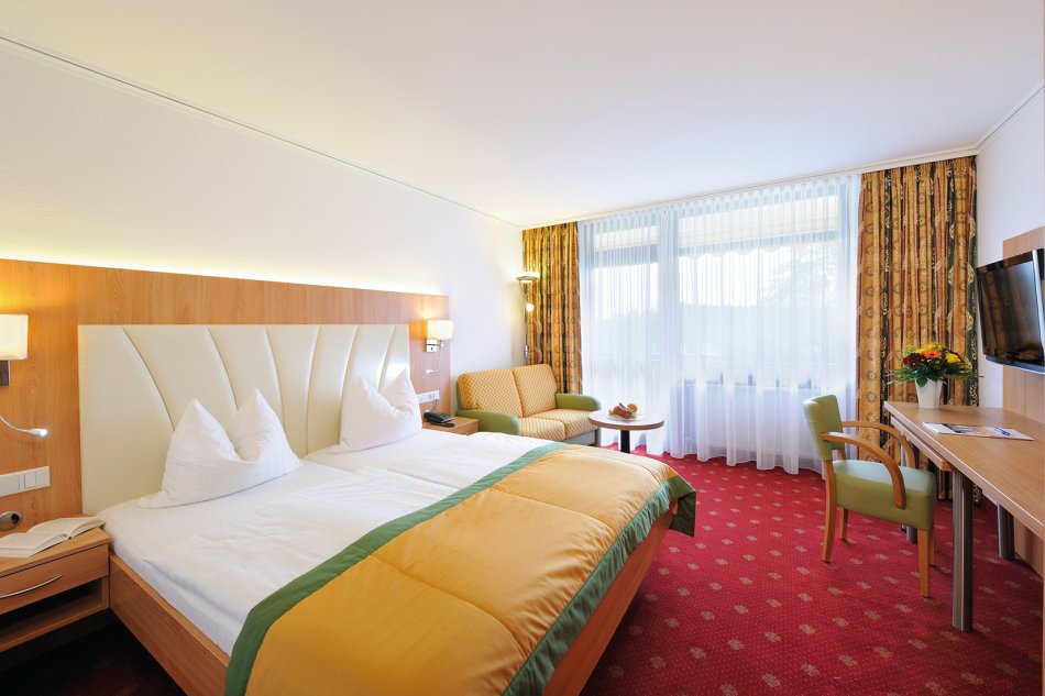 Lage: Unweit des Kurparks/Promenade. Ausstattung: Mittelklasse, Lift, Restaurant/Wintergarten, Schwimmbad mit Bad Füssinger Thermalwasser, Whirlpool sowie Saunalandschaft, WLAN. Gegen Gebühr: Massagen und Wellnessleistungen nach Verfügbarkeit. Zimmer: Großzügig (Komfort) mit DU/WC, Föhn, Balkon/Blick Grünanlage, TV, Kühlschrank, Sitzgelegenheit. Webseite: www.johannesbad-hotels.com