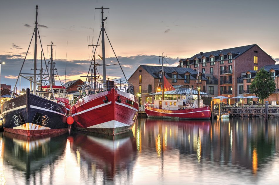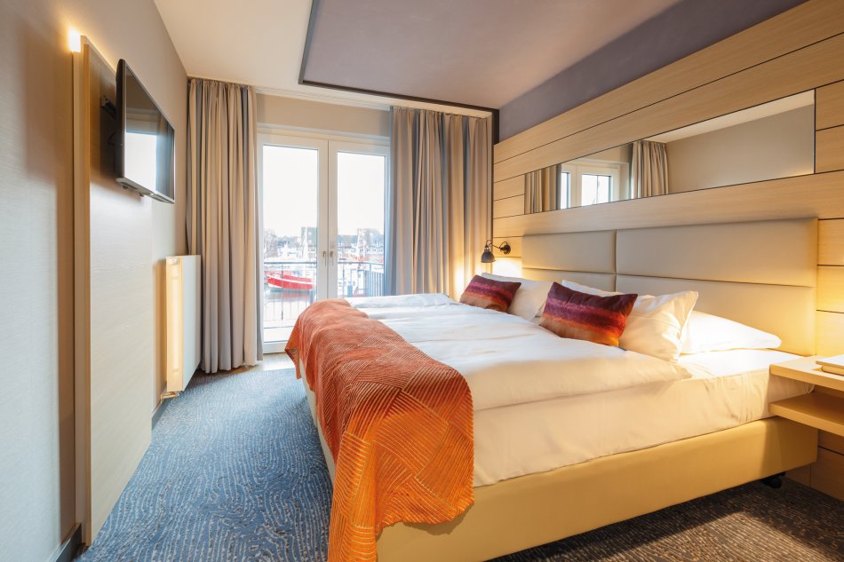 Lage: Yacht-/Fischereihafen, fußläufig zum Zentrum. Ausstattung: Gehobene Kategorie, Lift, Restaurant, Bar, Ladenzeile, Sauna, Fitnessbereich. Zimmer: Kategorie Standard: DU/WC, Föhn, TV. Die Zimmer in der Kategorie Comfort verfügen zusätzlich über einen Balkon. Webseite: www.hafenhotel-meereszeiten.de