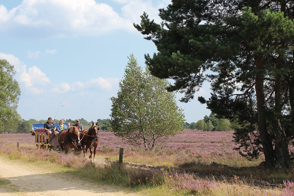 Heute unternehmen Sie mit der Reiseleitung eine Rundfahrt durch die Heidelandschaft. Das Programm unterbrechen Sie unterwegs mit einer Kutsch-/Planwagenfahrt. Mit ein wenig Glück treffen Sie den Schäfer mit seinen Heidschnucken und können die Tiere bequem von der Kutsche aus beobachten.