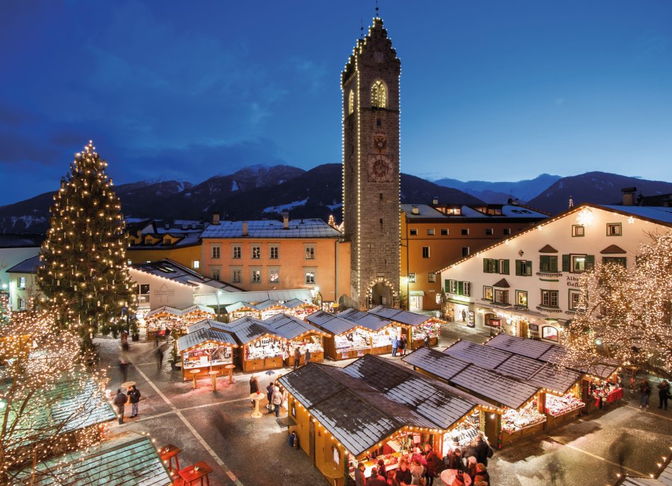 Sterzing ist eine charmante spätmittelalterliche Bergwerksstadt und auf fast 1000 m Südtirols höchstgelegene Stadt. Zu Weihnachten steht die Stadt unter dem Motto „Glockenweihnacht“. Lassen Sie sich bei einem Bummel über den Weihnachtsmarkt in festliche Stimmung versetzen.