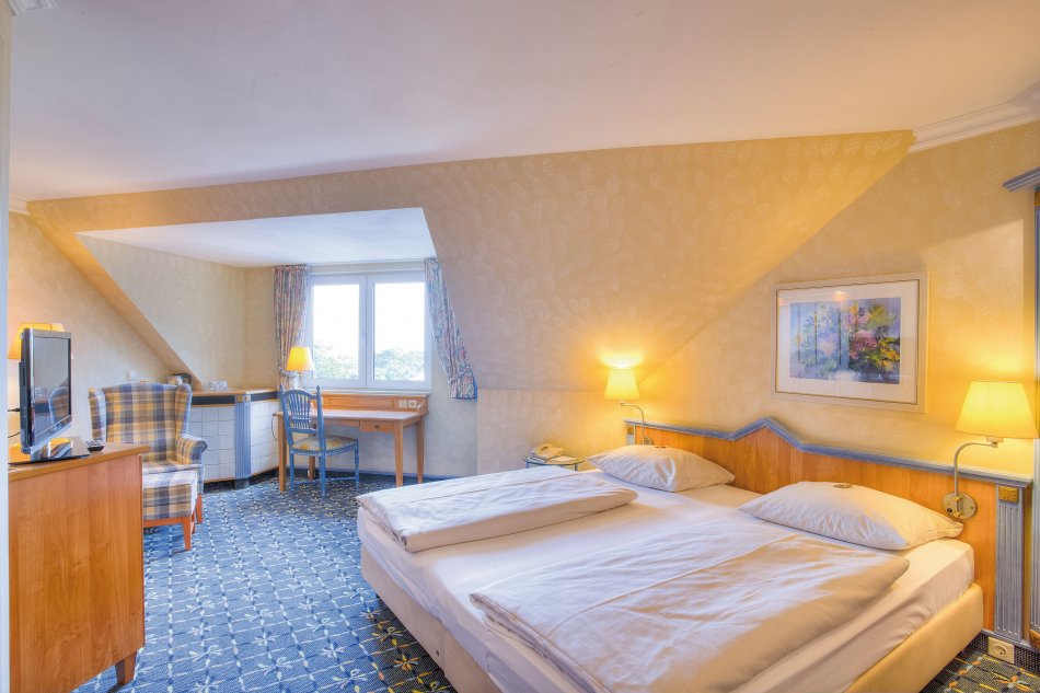 Lage: Strandallee, 50m vom Strand und zentrumsnah. Ausstattung: Komforthotel, Lift, Restaurant, Hotelbar, Terrasse, Sauna, BIOSauna, Dampfbad, Infrarotkabine, Ruhe-/Fitnessraum. Zimmer: Badewanne/WC, Föhn, TV, Tee-/Kaffeezubereitung & Mini-Kühlschrank, Safe, WLAN. Aufgrund der Badezimmer mit Badewanne ist das Haus für Gäste mit stark eingeschränkter Mobilität nicht geeignet. Gegen Aufpreis sind Zimmer mit Dusche und Balkon buchbar (geringe Anzahl). Webseite: www.countryhotel-tdf.de