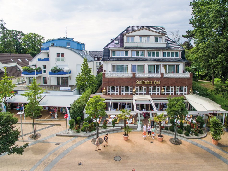 Lage: Im Zentrum, strandnah. Ausstattung: Traditionell, Haupthaus mit Nebengebäude, Restaurant mit Außenterrasse, Bar, Lift im Haupthaus, jedoch sind vom Fahrstuhl bis zu den Zimmern wenige Stufen zu bewältigen. Zimmer: Dusche/WC, TV, Minibar, Föhn, Safe, Sitzgelegenheit, WLAN. Webseite: www.holsteiner-hof.de