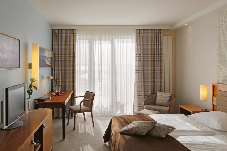 Lage: Halbinsel Tarnewitz, im Resortgelände Weiße Wiek. Ausstattung: Komforthotel, Lift, Außenterrasse, Restaurant, Bar, Innenpool, Sauna, Dampfbad, Erlebnisdusche, Wärmebänke, Ruheraum, Kosmetikanwendungen, WLAN. Zimmer: Meerblick, DU/ WC, Föhn, Leihbademantel, TV, kleiner Kühlschrank, Safe, Balkon oder Terrasse. www.lindnerhotels.com