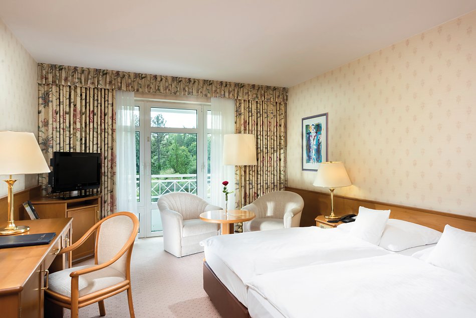 Lage: Am Kurpark, fußläufig zur Altstadt. Ca. 150m Fußweg zum Hoteleingang mit Steigung. Ausstattung: Traditionshotel, Lift, Restaurant, Hotelbar, Fitnessbereich, Schwimmbad, Sauna, Dampfbad. Zimmer: Classic-Zimmer (18m²) zur Waldseite in den unteren Etagen, Badewanne/WC, Föhn, TV, Radio, Kühlschrank, Safe. Zimmer mit Dusche können gegen Aufpreis/auf Anfrage gebucht werden (sehr geringe Verfügbarkeit). www.maritim.de