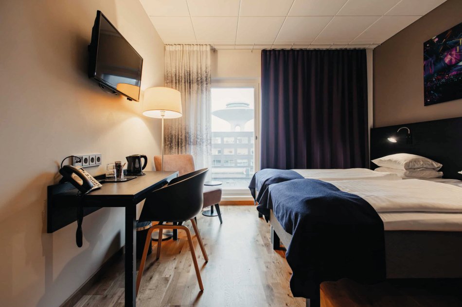 Lage: Stadtrand. Ausstattung: Lift, Restaurant, Skybar mit Blick auf die Öresund-Brücke. Zimmer: DU/WC, Föhn, TV. https://malmoarenahotel.com