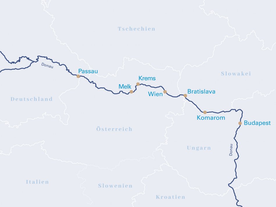 Die unvergessliche Flusskreuzfahrt auf der Donau beginnt in der schönen Dreiflüssestadt Passau und führt Sie durch vier Länder. Krems bildet den ersten Stopp auf der Reise, die Stadt gilt als eine der ältesten Städte Österreichs, denn sie wurde im Jahr 995 bereits das erste Mal als Chremisa genannt. Über die Kaiserstadt Wien mit ihren Palästen von Kaisern und Königen fahren Sie nach Budapest, dem „Paris des Ostens“, und bestaunen das berühmte Wahrzeichen der Stadt – das imposante Parlamentsgebäude direkt am Donauufer. In der slowakischen Hauptstadt Bratislava angekommen erleben Sie vom Burgberg einen überwältigenden Blick über die Stadt und das Donautal. Letzter Halt auf Ihrer Reise ist Melk, bekannt durch das historische Benediktinerkloster Stift Melk, welches auch das „Tor zur Wachau“ genannt wird.