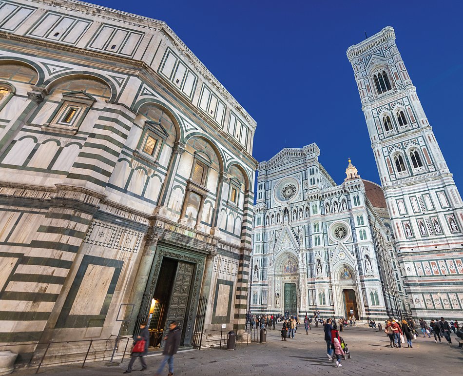 Auch in Florenz entdecken Sie ein großes Angebot an Sehenswürdigkeiten und Kunstschätzen. Dazu gehören unter anderem der Dom Santa Maria del Fiore mit seiner bunten Marmorverkleidung sowie das Baptisterium San Giovanni, das im 11. Jahrhundert geweiht wurde. Ebenso berühmt ist die Piazza della Signoria in Florenz mit dem Palazzo Vecchio, dem Neptunbrunnen und Michelangelos David.